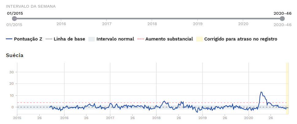 MarcoAntonio Escreveu:A pergunta não era para mim mas a minha apreciação é que o que causou o fenómeno lá foi um conjunto de factores, em que se incluem (principalmente) o efeito sazonal e as medidas (que no caso da Suécia foram mais soft). E o resultado que observamos é que o desaparecimento do excesso de mortalidade foi claramente mais demorado na Suécia.