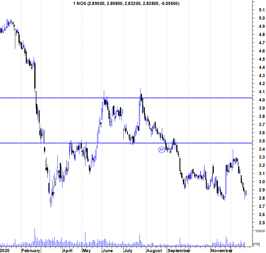 Em Bears Markets como o da NOS a quebra de resistências é claramente o melhor indicador de posicionamento.