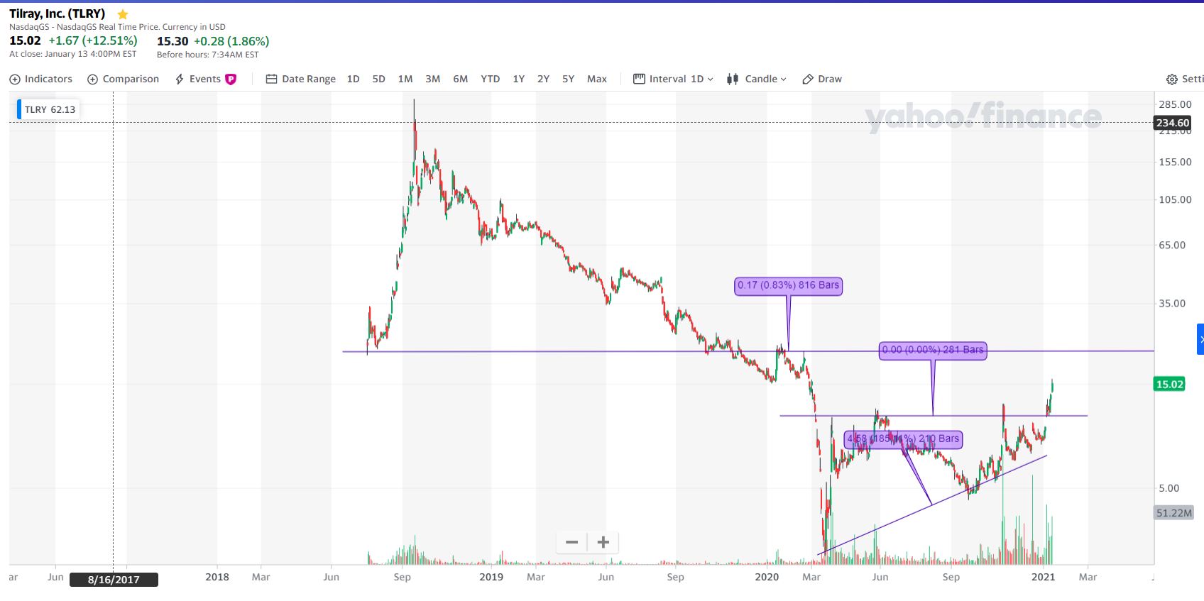 Esta (a TLRY) é um dos cavalos. O gráfico tem muita pinta ...