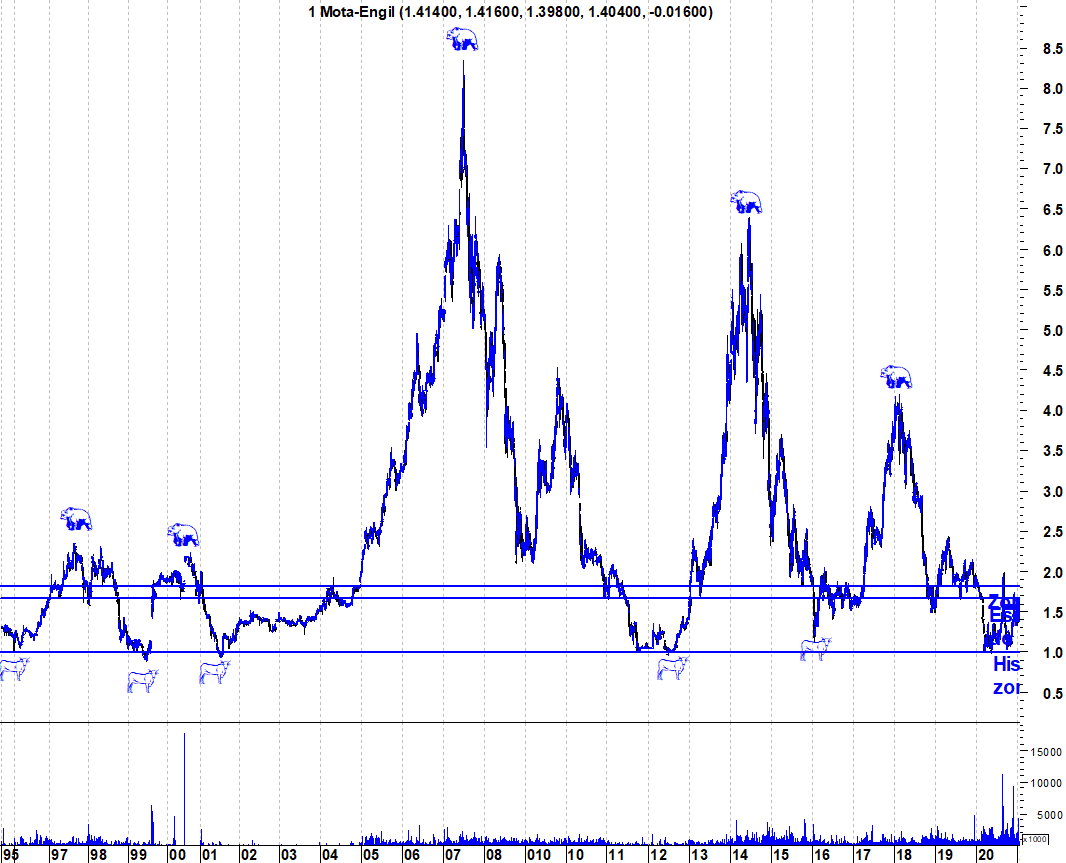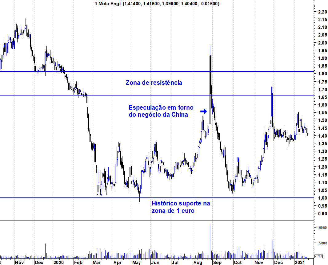 Deixo os gráfico actualizados da Mota, onde se pode ver a montanha russa que foi em torno das notícias do negócio chinês. Mas, nos últimos tempos, a acção tem estado bem mais tranquila.