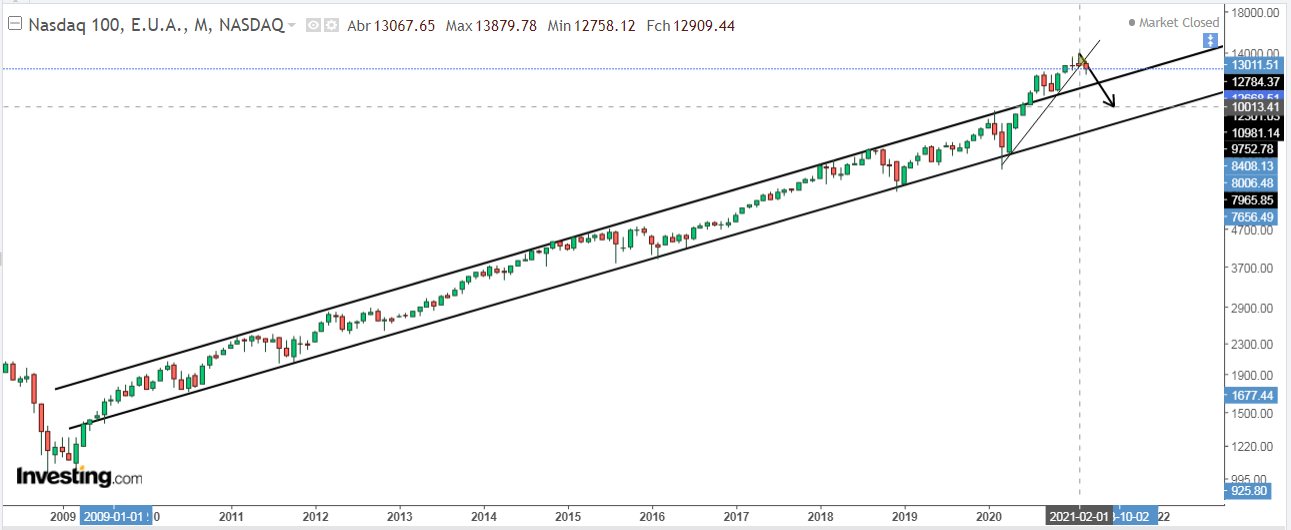 Deixo uma nota que isto é o NAS100 estamos a falar das empresas que conseguem agregar mais valor. Para mim o transferir capitais para o sector tradicional não serve. Se o NAS100 entra em underperformance e cai em bear market estamos a falar de problemas estruturais muito graves e provavelmente com consequências graves para a economia.