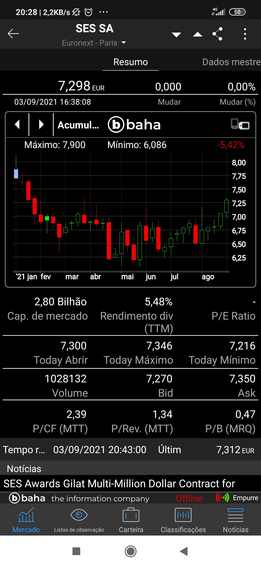 Tecnicamente depois de um grande bear fez um padrão dos 3 soldados brancos, padrão de inversão, além de estar tudo alinhavado para receber 4bis USD de compensação pelo 5G e que é mais que o market cap da SES.