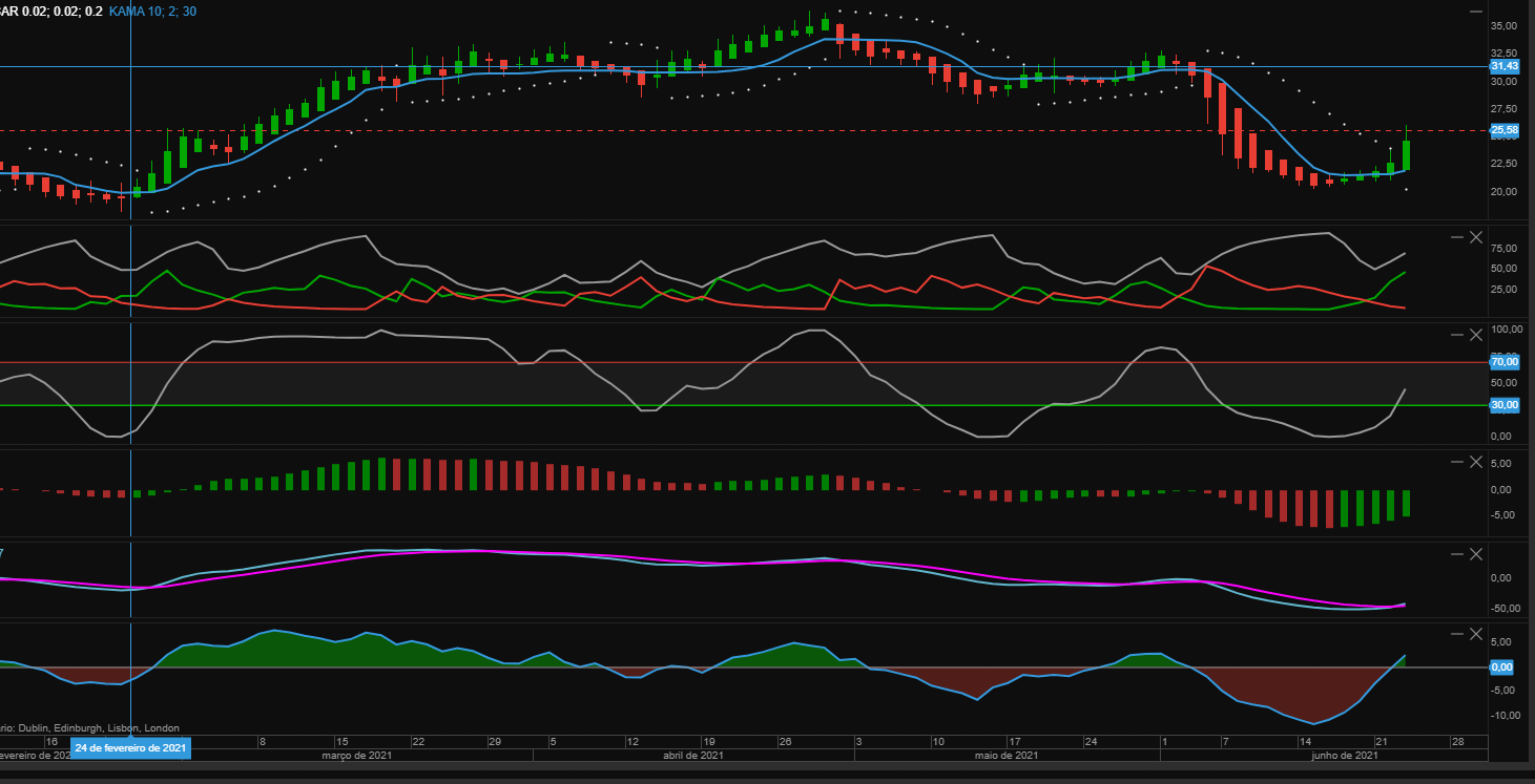 Penso em sair na abertura, se perder a força e não ultrapassar os 5$. Mas se voltar aos 4$, reforço uma tranche.