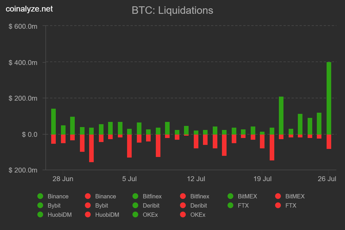 As barras verdes representam liquidações de posições curtas.