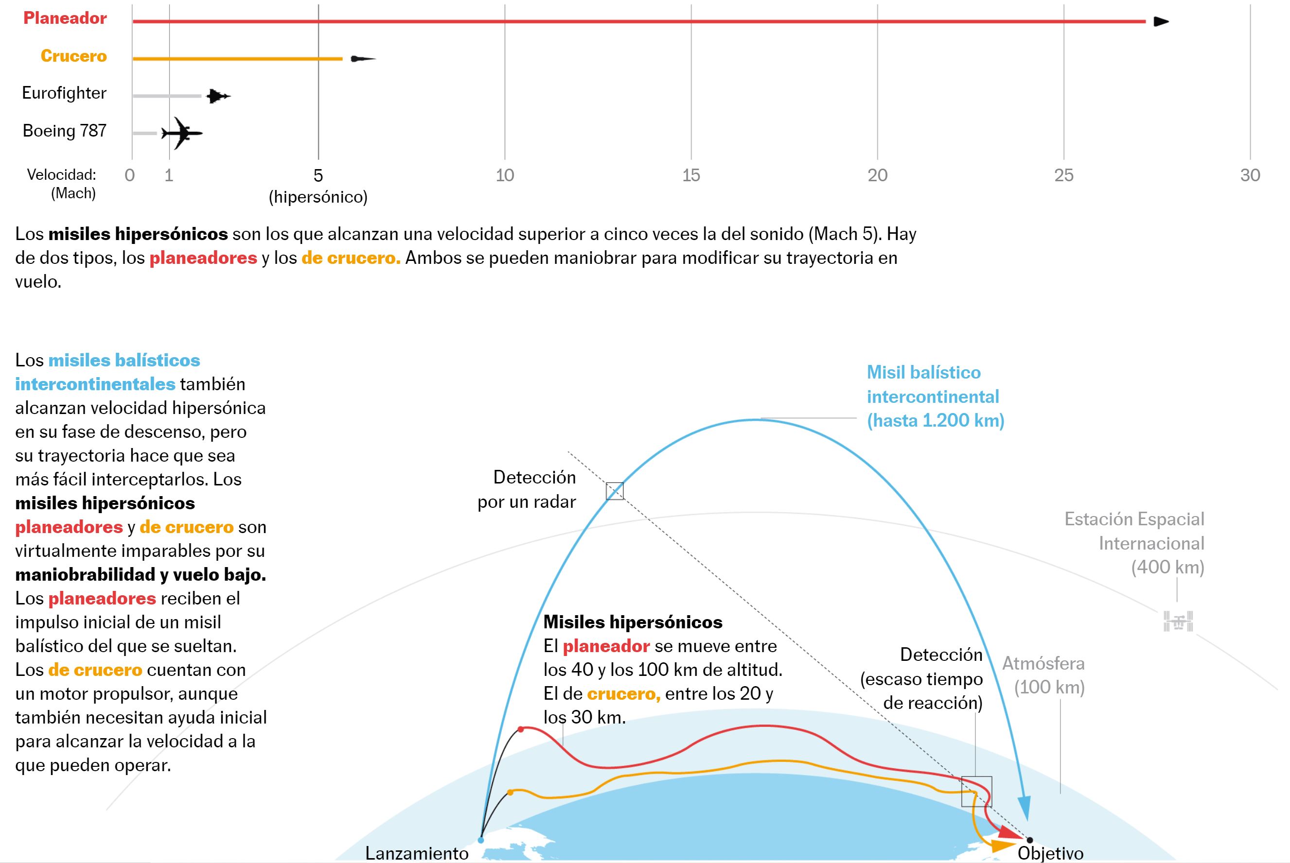 “Chinos y rusos no están preocupados por las capacidades de defensa antimisiles actuales de Estados Unidos, sino por las próximas fases”, comenta Justin Bronk, investigador del Royal United Services Institute británico. “Con esta tecnología intentan enviar un mensaje de alguna manera disuasorio a EE UU. Intentan decirles: ‘es inútil que sigáis por esa senda, que desarrolléis una nueva generación de defensa antimisiles balísticos, porque nosotros hemos abierto otro camino’”, prosigue. En la actualidad, Washington dispone de una clara ventaja defensiva, pero no suficiente para neutralizar un eventual ataque múltiple contemporáneo. Sin embargo, la mirada de perspectiva resulta inquietante para Moscú y Pekín, que tienen por tanto interés en alterar esa dinámica.