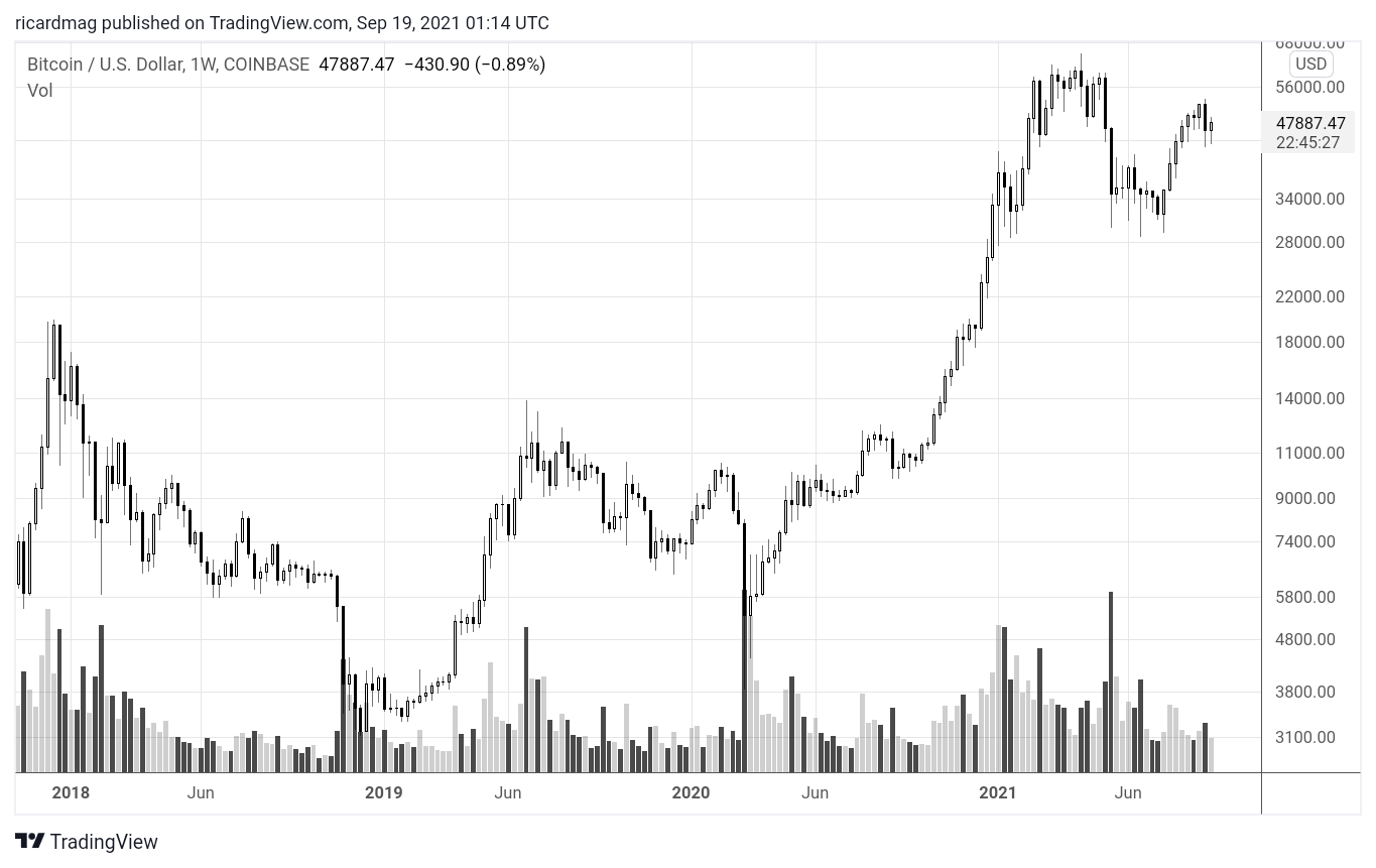 Bitcoin cai com os receios macro e micro (o oposto tb é verdadeiro, Bitcoin sobe com a euforia e Macro-conjuntura positiva) » proibição de transações na China+Evergrande (mercado Chinês era o 3º maior), com o bear market CP USA por causa da inflação, desaceleração económica, hipotético default USA a 18 de outubro (que não vai acontecer) e shut down - que vai acontecer apartir de 1 de Outubro, Setembro é o mês "negativo" dos mercados desde 2008.