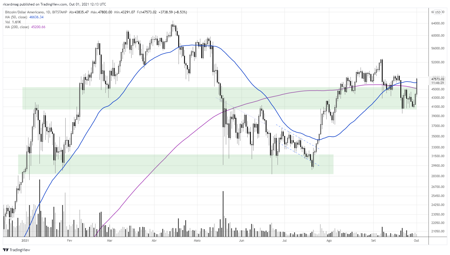 Como sempre posso estar errado e o risco desta operação - em Bear market CP e MP - é superior ao que normalmente suporto, mas a oportunidade técnica de Bitcoin superar a MMS50, da pró-sasonalidade Outubro onwards e da óbvia aprovação do novo debt ceiling USA entre 3 de Outubro e 18 de Outubro (obviamente evitando o catastrófico default), leva a que tenha reentrado, via Coinbase, em Bitcoin, Ethereum e Cardano após um mês sem cryptos.