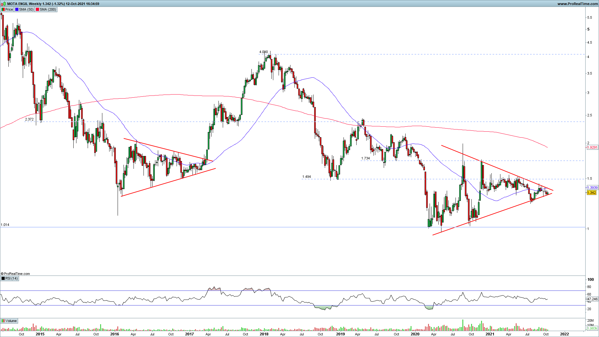 A propósito de semanal, de meados de 2020 até agora há um gigantesco triângulo, e apex quase a esgotar. Em 2016/7 idem, e quando o triângulo se esgotou subiu de 1,50 acima de 4.