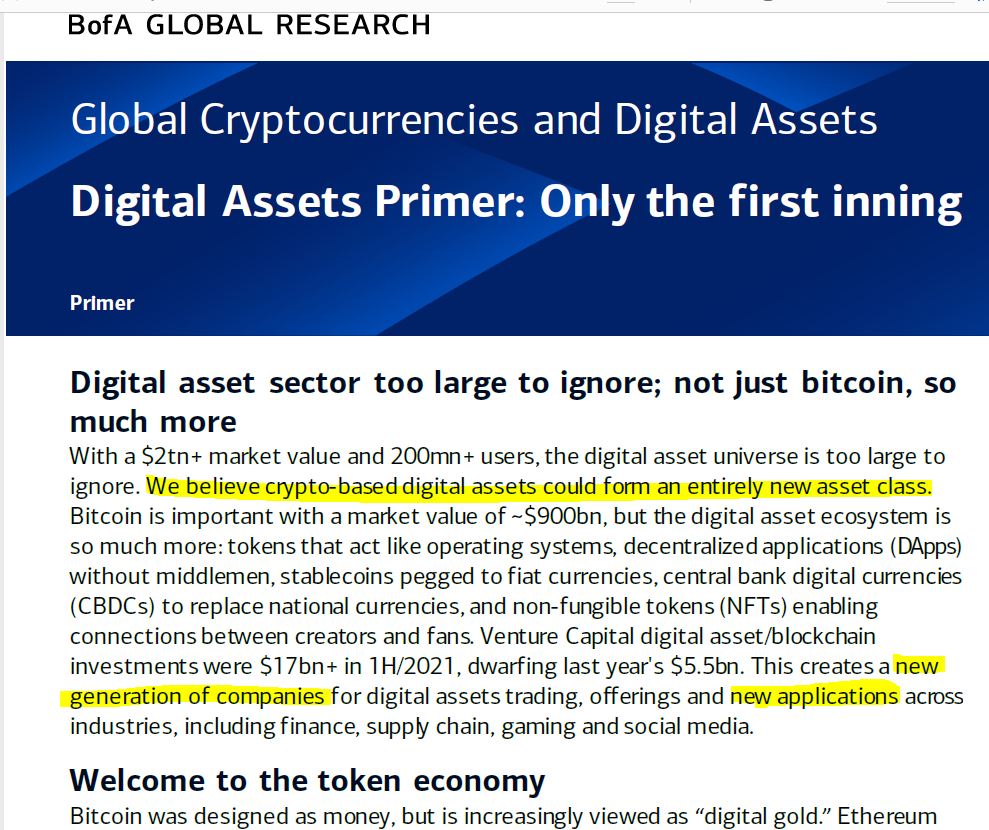 Pequeno teaser de alguns docs publicados ao longo de 2021 s/ BTC e crypto. Cada vez é mais difícil encontrar céticos "one-way-only", embora há sempre uma % que não reconhece uma inovação nem que lha carimbem na testa. Os bolsos fundos de Wall Street viraram para este espaço há tanto tempo que já escrevem sobre ele abertamente para os clientes. Exemplos: Bank of America, Goldman Sachs, Fundstrat, Spectra, Citi. Há mais, bem mais, não há é tempo para os colocar aqui.