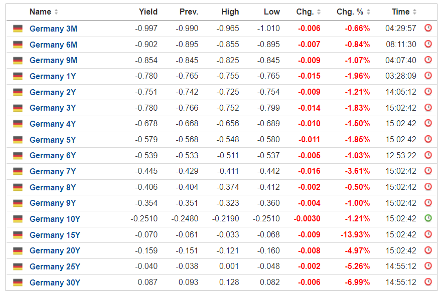 Alguém no seu perfeito juízo ou na plenitude das suas capacidades mentais acha que com o comportamento das Bonds Alemãs (ver quado infra) a propalada inflação veio para ficar?