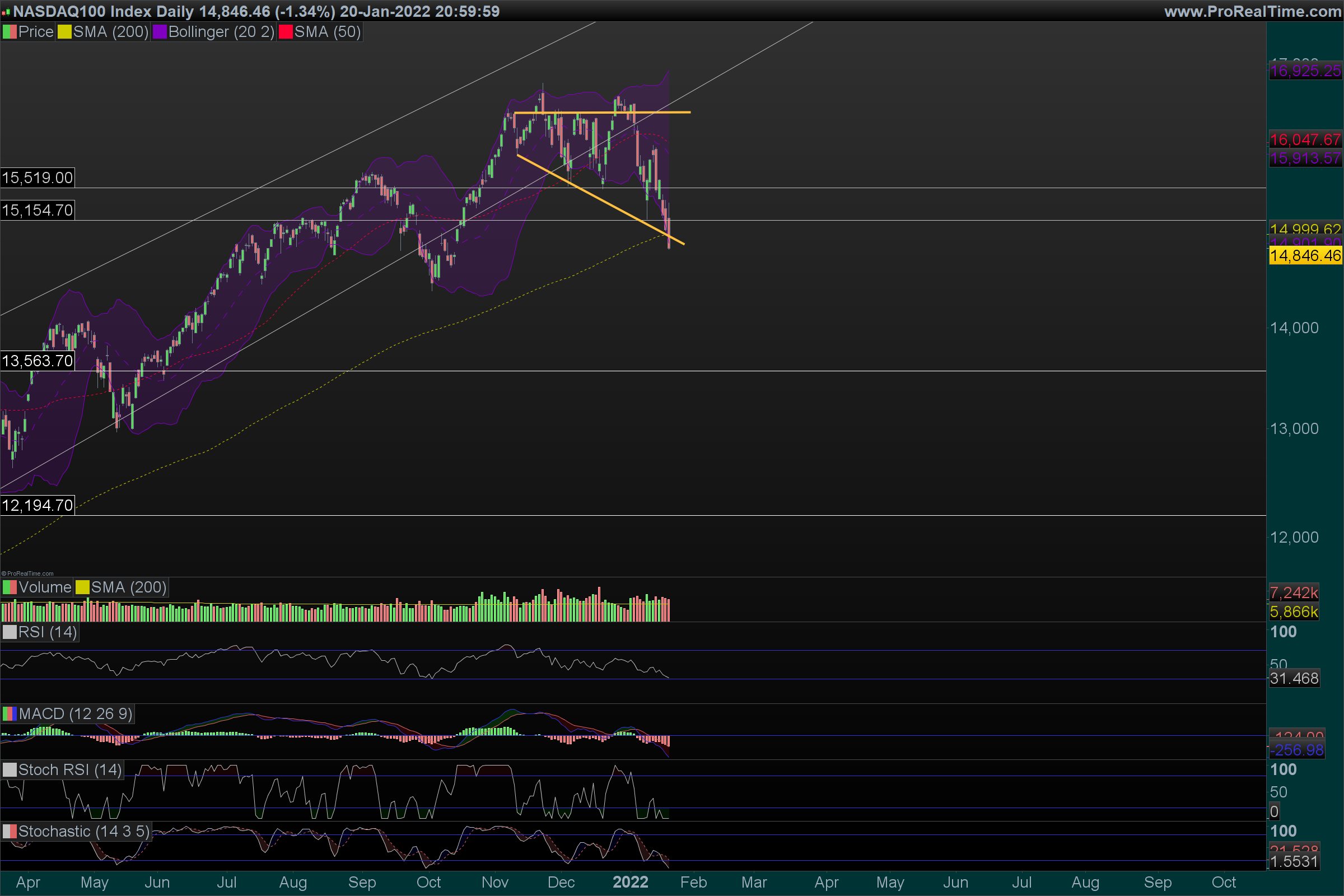 Uma quebra nestes pontos, pode acelerar a queda de preço, diria que os 14600, 14500 podem ser atingidos em poucos dias.