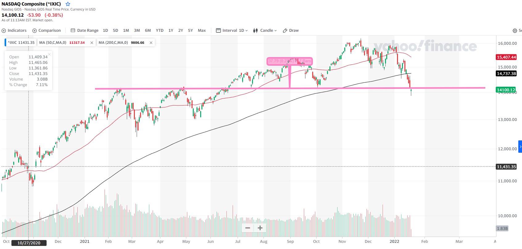 Agora a questão reside sobre a celeridade com que a FED o fará e se o fará de uma forma tão agressiva como tem afirmado. Acho difícil entrarmos directamente num bear market, mas um período de consolidação e lateralização acho bem possível. Talvez voltar a um período de menos volatilidade, mais ao género pré-covid. De qualquer forma, como dizes, tecnicamente os índices não estão muito "bonitos" e alguns em zonas de risco, ainda que para já, as tendências primárias não estejam invalidadas.