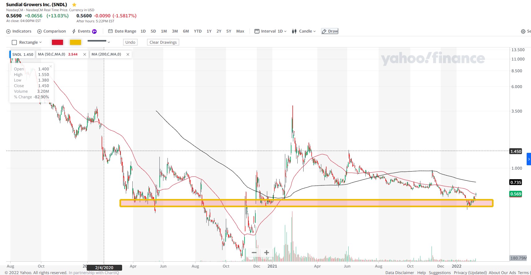 A SNDL teve uma extensão de 180dias de listagem no NASDAQ. Não cumpre com o preço mínimo por ação de 1$.