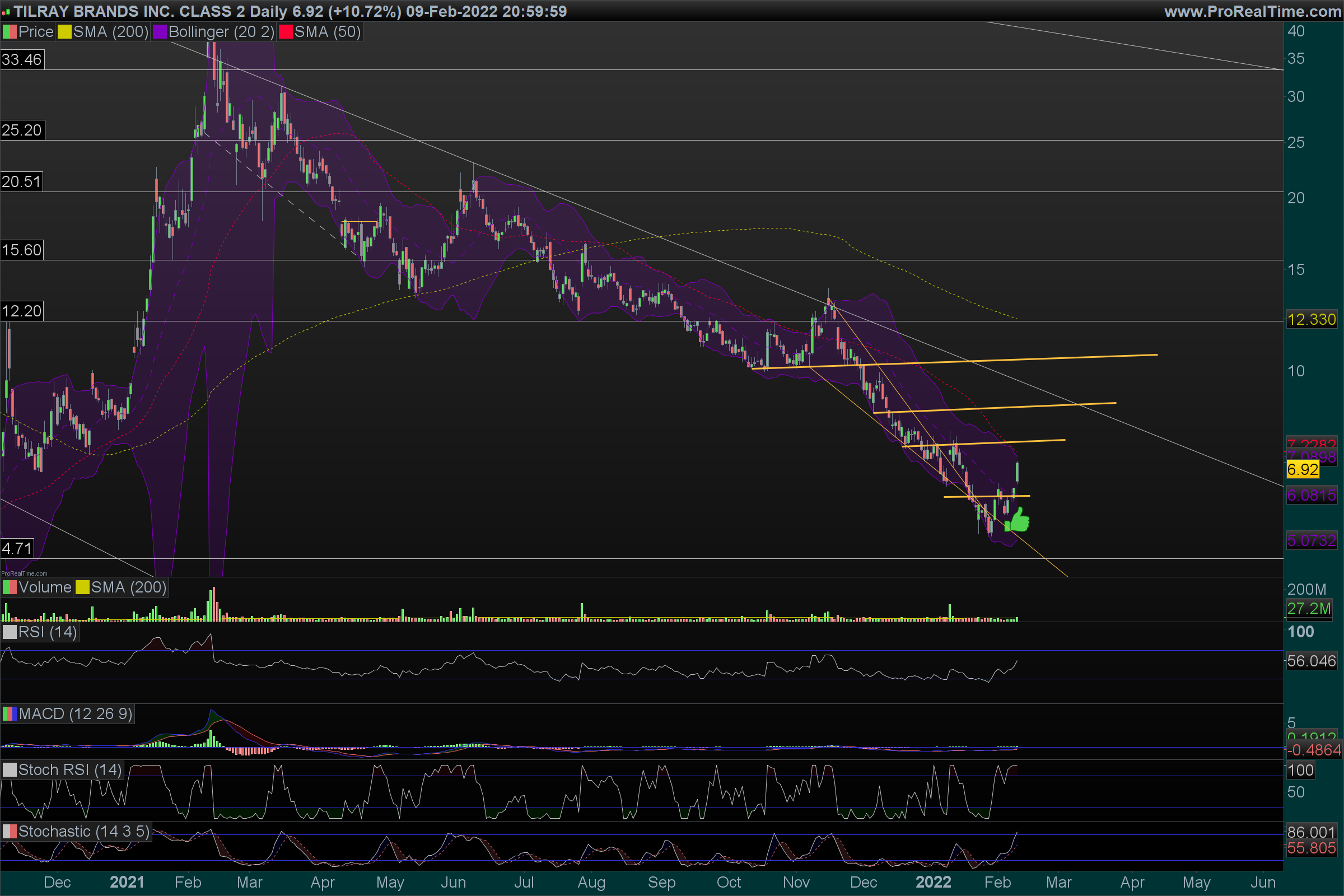 A Tilray deu o primeiro sinal, é importante que não quebre os $6. Que são agora o suporte stop loss da primeira remessa.