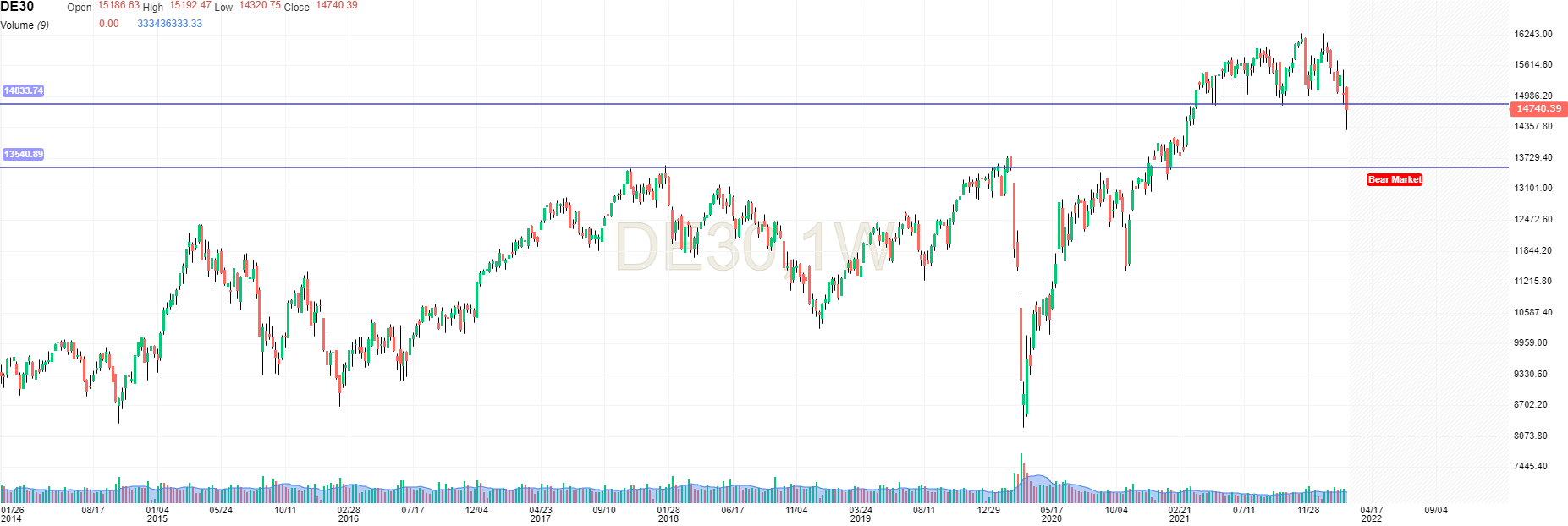 Realmente em termos de mercado a coisa realmente ainda não esta assim tão negativa, mas apesar de tudo o DAX fez mínimos de um ano. Mesmo assim ainda esta longe do que me parece o limite para entrar em bear market. O suporte ontem foi quebrado mas falta ainda confirmação.