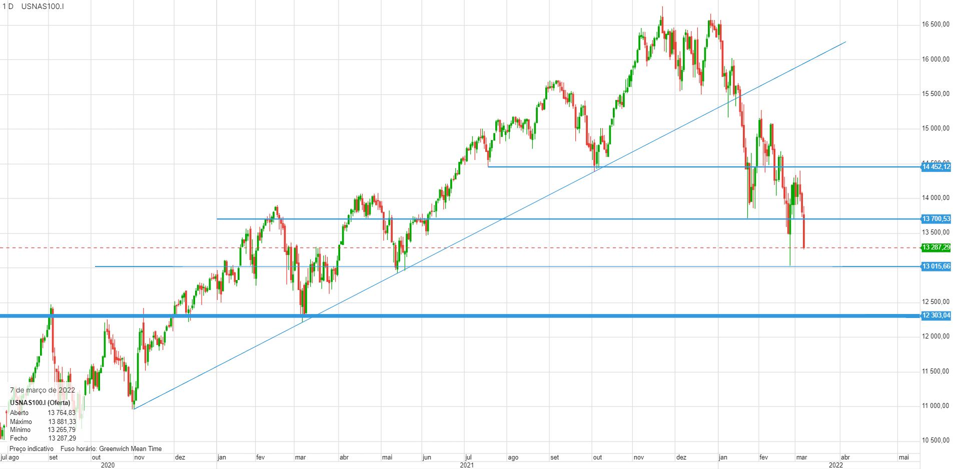 Nas últimas 9 semanas o Nasdaq caiu em 7. Valores de referência estão a ser sucessivamente quebrados e a apontar para algo mais que uma simples e normal retração.