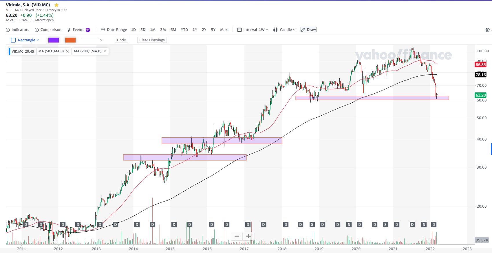 E digo mais, está num suporte e é excelente empresa, com pouca dívida, e vidro, assim como os satélites, são o futuro... Comprei hoje a 63,10 EUR