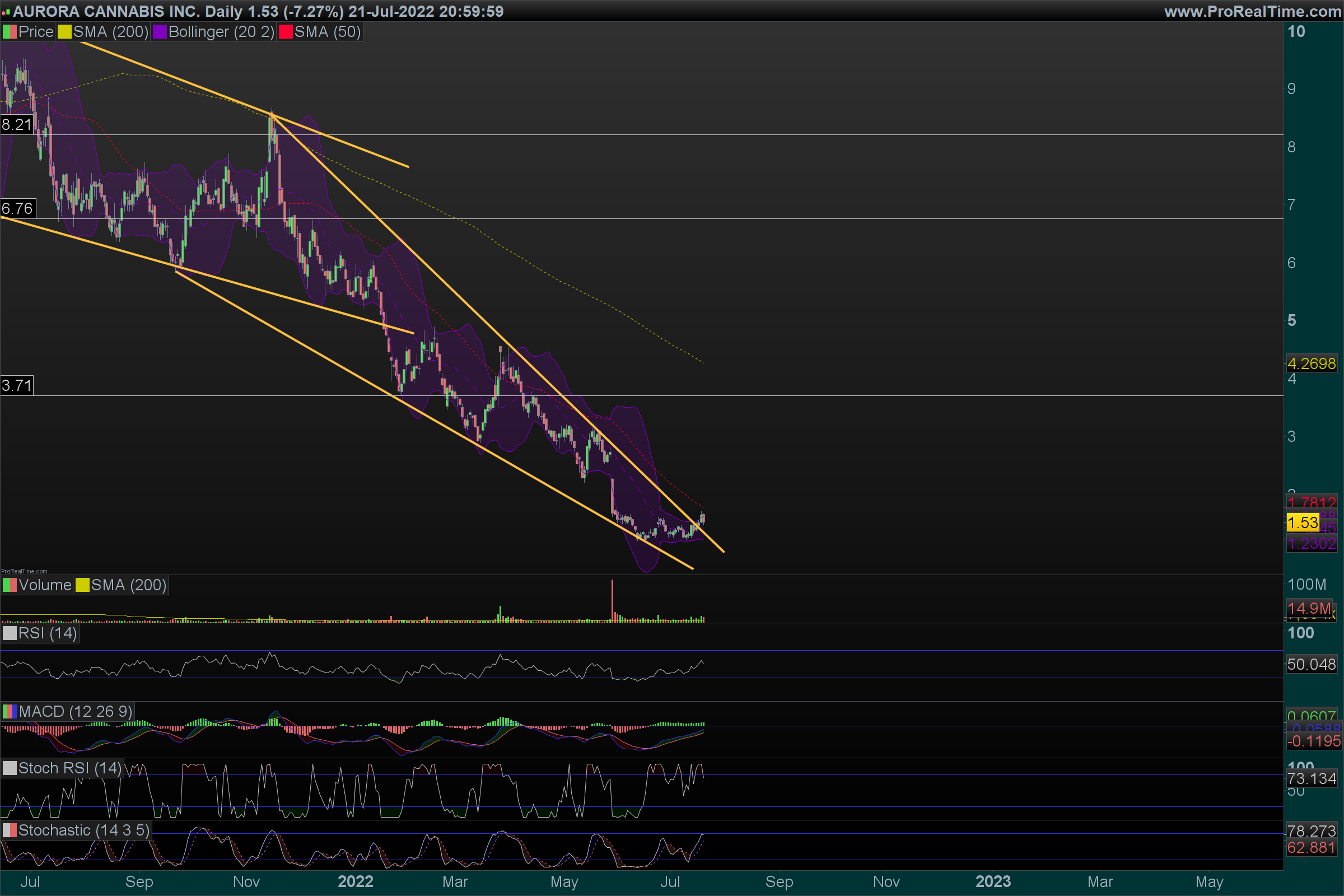 As marijuana stocks tecnicamente estão uma lástima, mesmo a SNDL que recuperou qualquer coisa dos mínimos.
