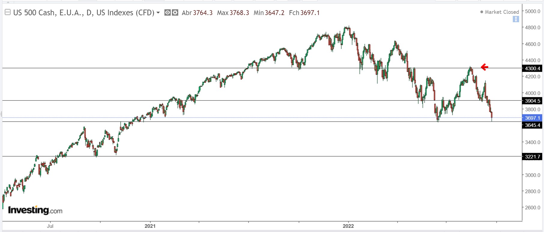 Com a provável continuidade da subida das taxas de juro por parte de FED (falta saber até onde), parece-me que, quando ocorrer o pico máximo das taxas de juro, quiçá entre os 4 ou 5%, aquando desse pico, poderá ser esse um sinal, o momento, de uma possível inversão de tendência, mas os gráficos vão ajudar a perceber isso, isto é, assim que ocorrer rompimento de resistências significativas.
