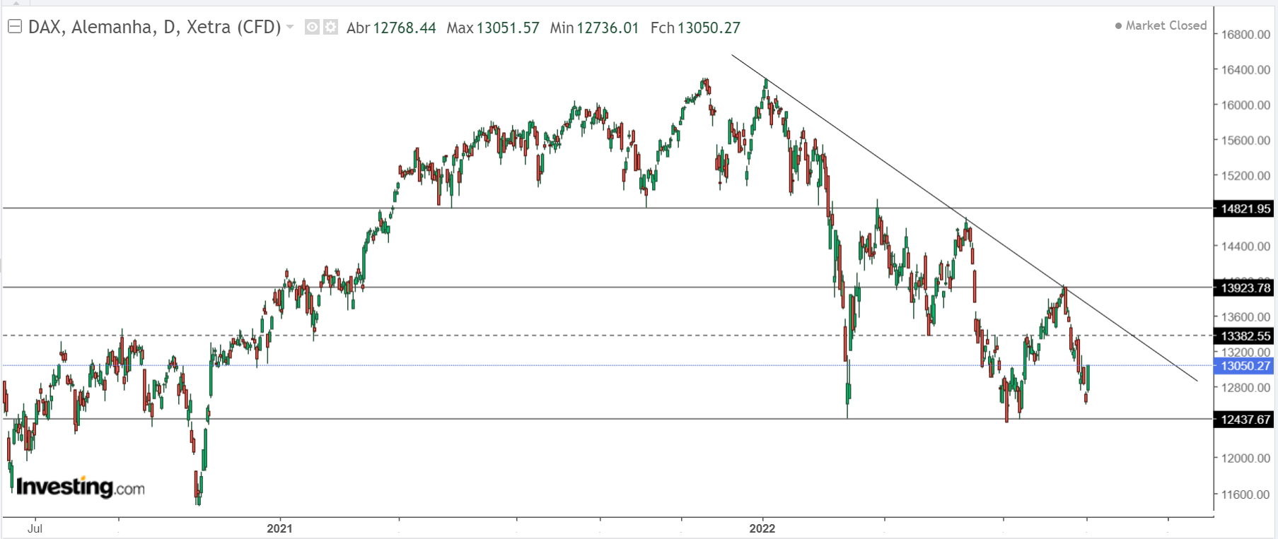 Este é o 3º toque na zona dos 13000, que foi onde o indice andou desde 2017. No Dax, prognósticos só no fim do jogo.