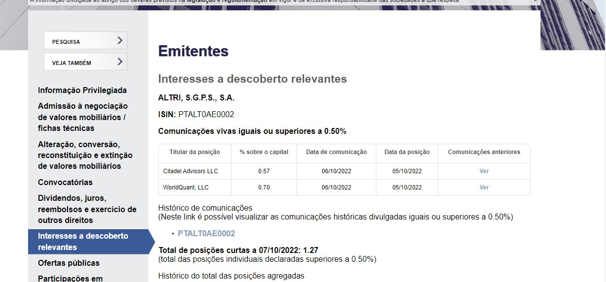 a citadel está abaixo do limiar da comunicação à cmvm, 0,5% em posição short