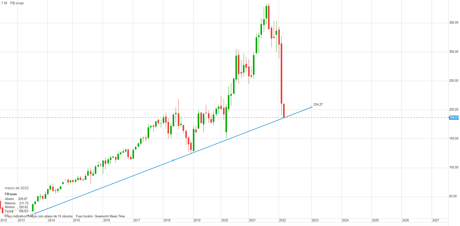 Se o Facebook chegar a casa dos 175.00 irei reforçar consideravelmente.