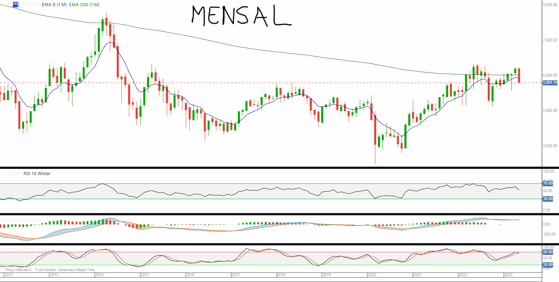 Resumindo, o mais importante neste momento é que a tendência do PSI20 é ascendente desde 2020 e que deixa de ser ascendente se descer abaixo de 5292.