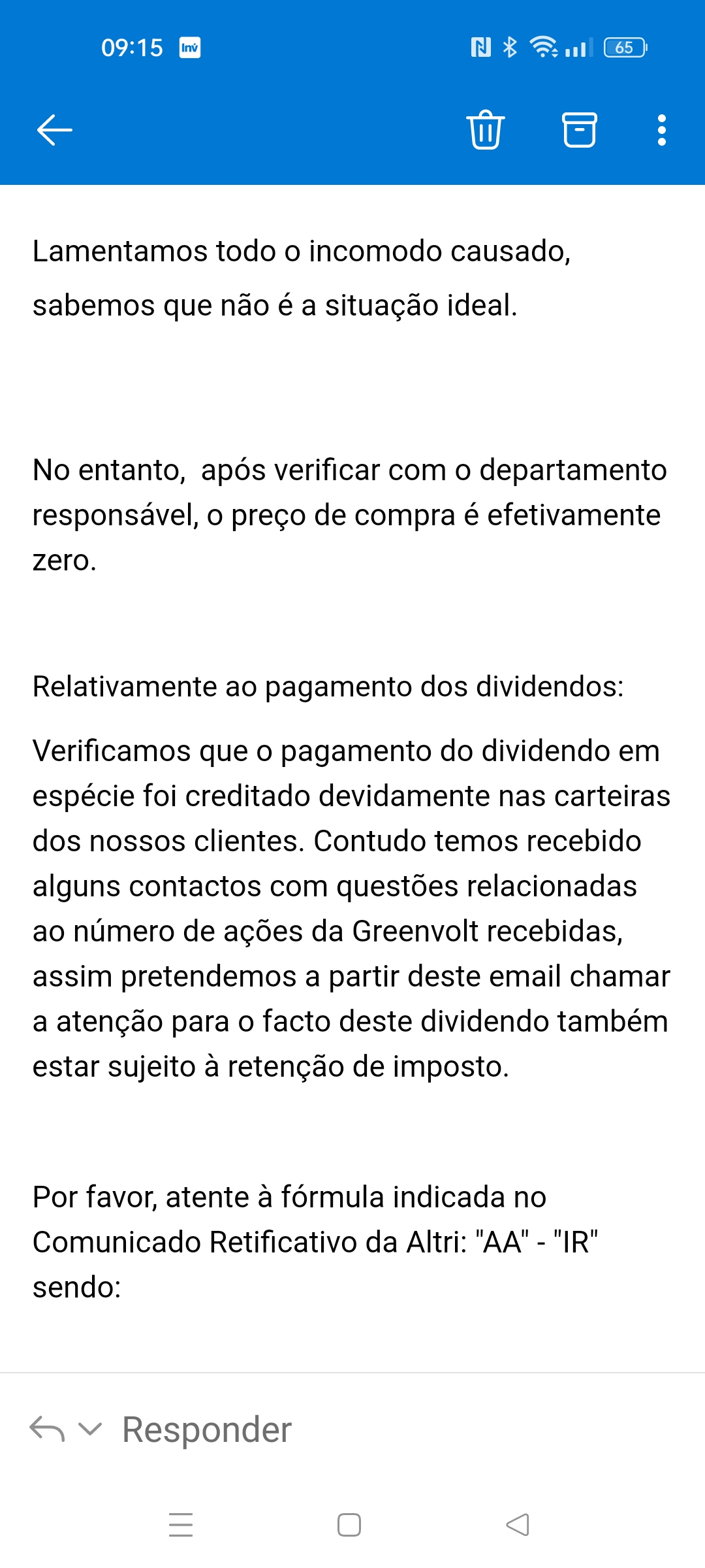 Acabei agora mesmo de entrar no registo de mais valias no banco invest e está corrigido. Agora já aparece com o preço de aquisição a 6,515€. Finalmente corrigido.