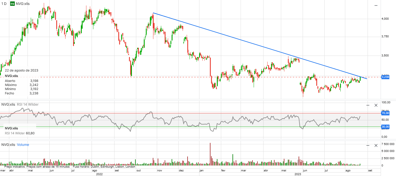 Apesar do atual momento da bolsa, com alguma indefinição e com perspetiva de baixa, na minha opinião, a Navigator é porventura a melhor empresa portuguesa, pelo que, pessoalmente acho que vai subir. No entanto, vou aguardar por confirmação.