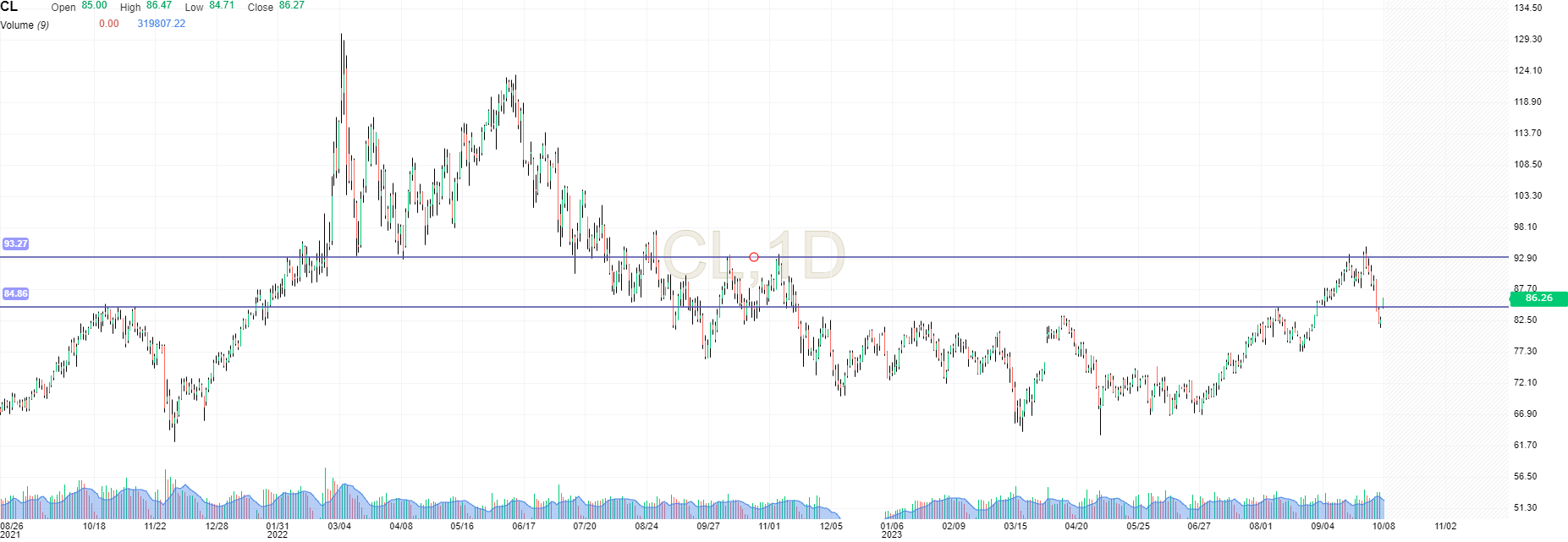 A expectativa é que faça um reteste 84-85 se não conseguir voltar para cima temos bear market no oil. Ou pelo menos o fim do bull market.