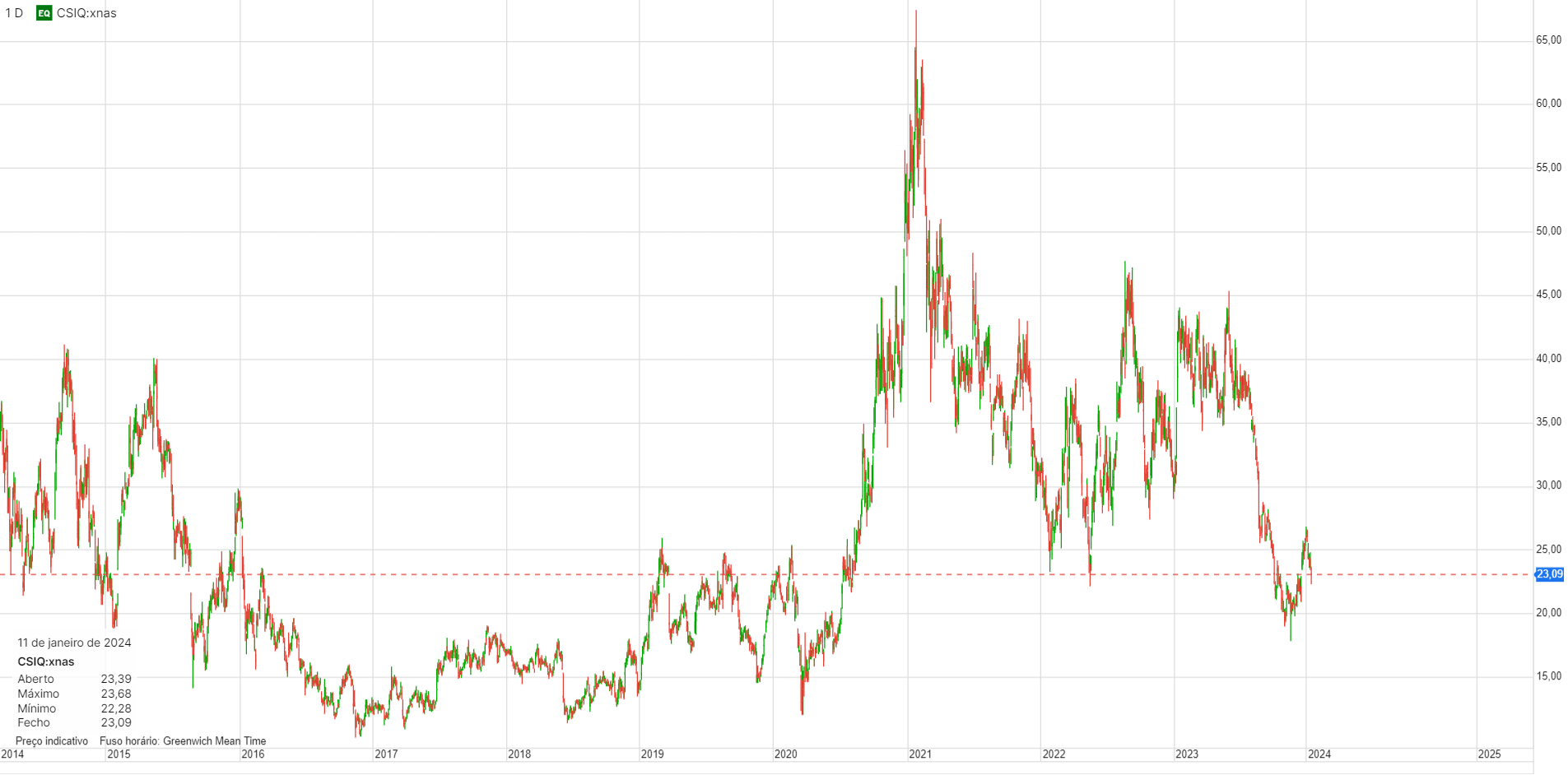 Na shortlist, tenho a Applied Optoeletronics (telecom), Daqo Energy (renováveis, tive-a em 2023 mas tive que cortar perdas. Tem cash superior ao market cap), Canadian Solar (renováveis).