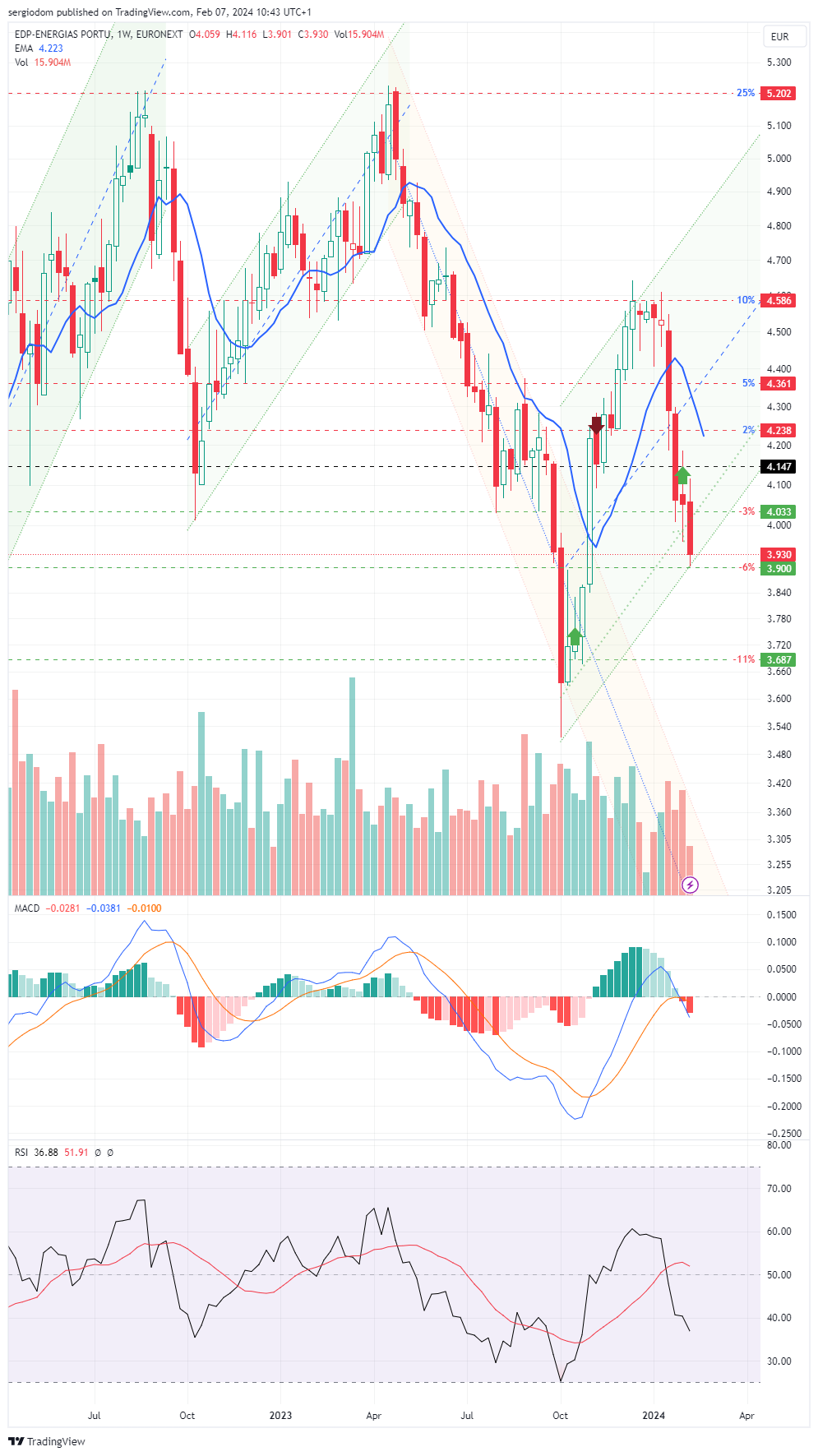 na minha opiniao, o suporte fica nos 3.9eur, definido pelo limite inferior do canal ascendente que começou em outubro passado.