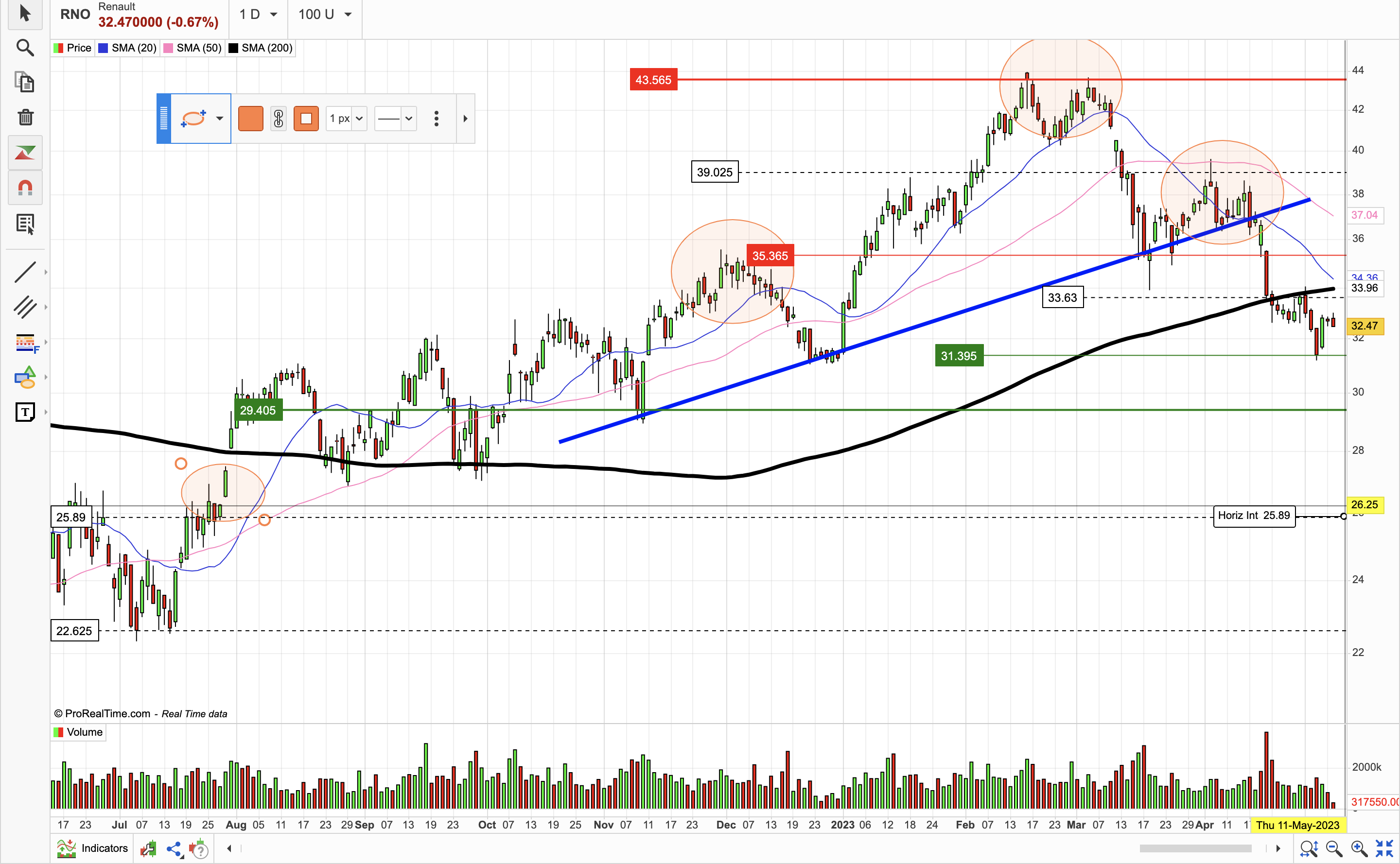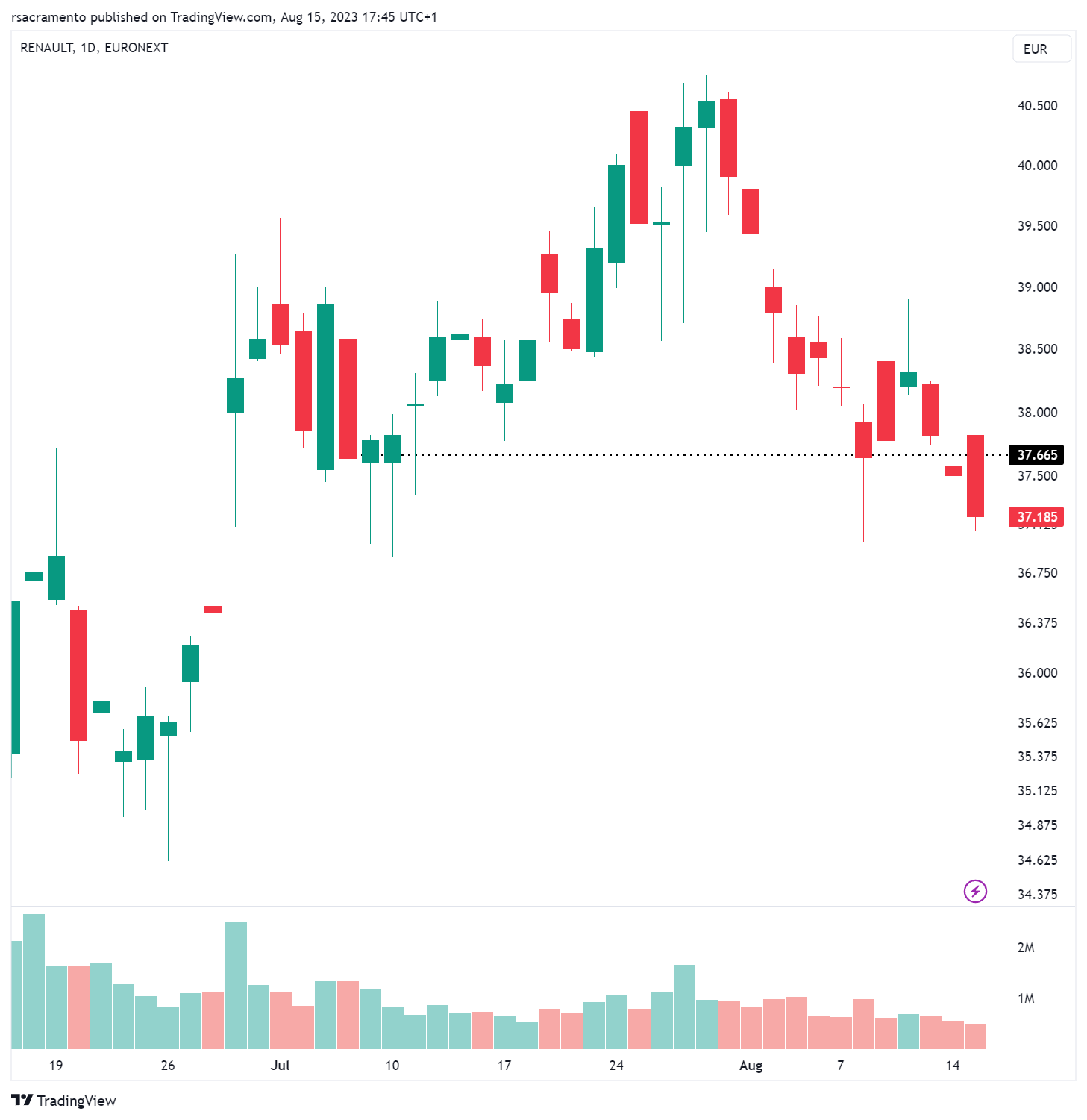 Muita força, num dia que cai o CAC. recompra de 3 milhoes de acçoes ajuda. Acredito que va aos 38. RSI aguenta até lá