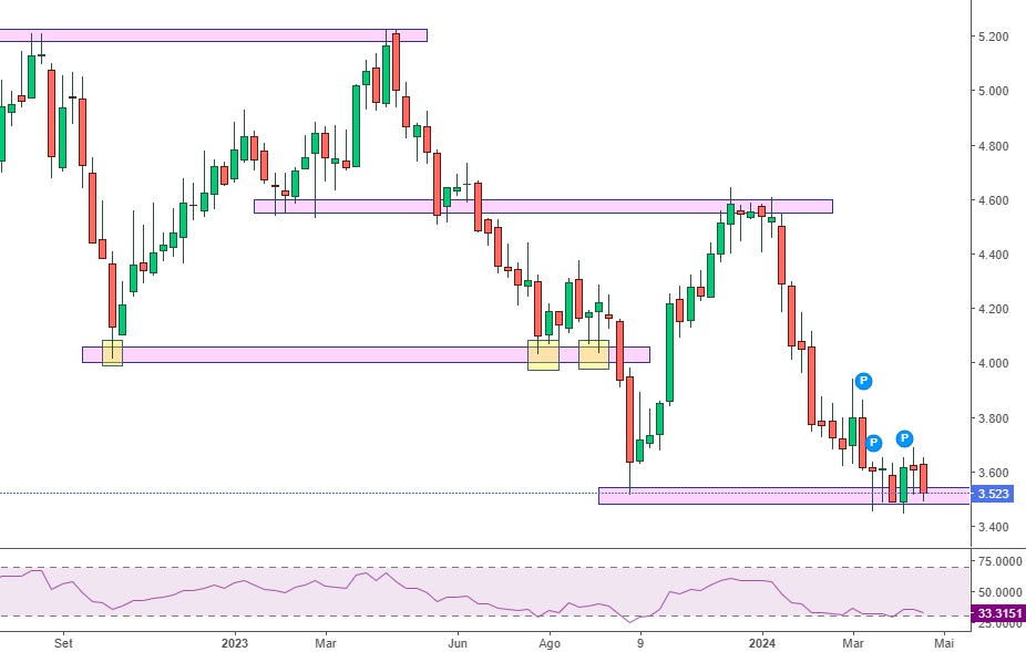 O valor à volta dos 3.50 tem sido um belo suporte.
