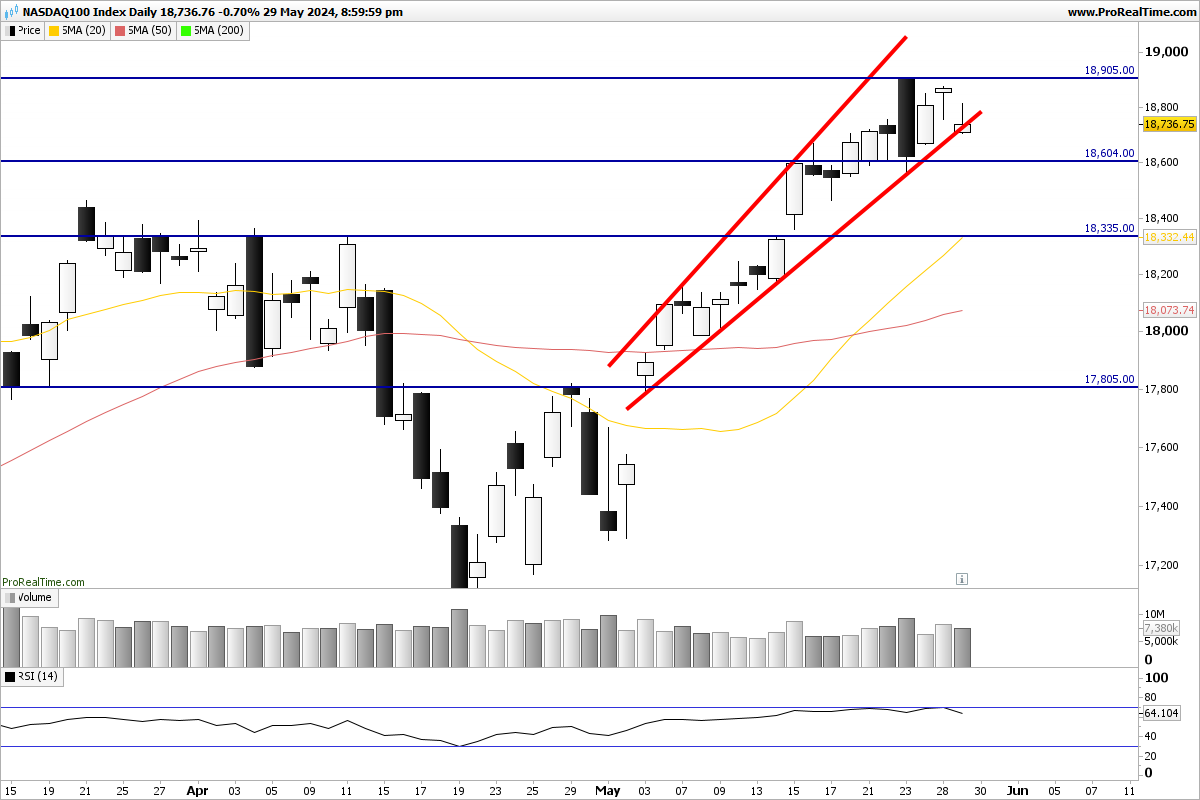 Com o otimismo em alta e com muita fruta para colher em dividendos a tónica tenderá para o positivo. Não me surpreenderia se o Dow Jones fosse a 5400 antes de corrigir. O Dax é outro índice feito de ações com dividendos generosos, os bancos vão querer recolhê-los e, portanto, até 31 de Maio o vento que empurra para norte deverá ser o modo como sopra.