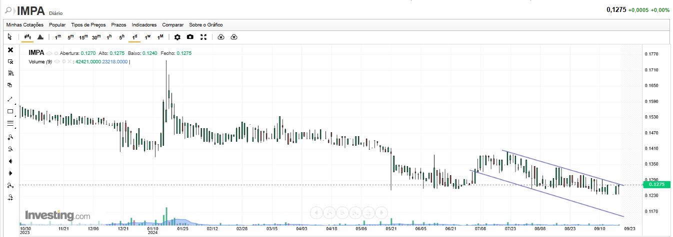 Hoje, um "prego" verde no gráfico, mas não deixa de ser um "prego"! Parece com vontade de descer mais um degrau.