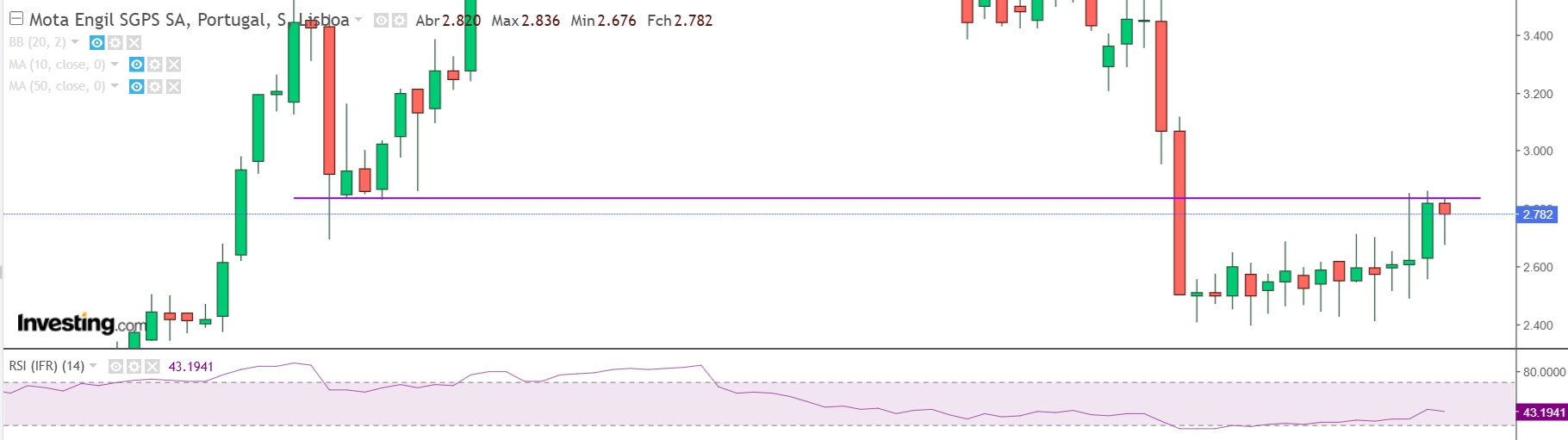 Com um fecho ainda acima da EMA10, SMA10, EMA50 e SMA50, o que o leva a dizer que é mais provável os 2,5 do que os 3?