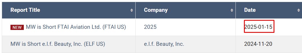 Na passada quarta feira, dia 15, a Muddy Waters arranjou outro alvo para se entreter, a FTAI AVIATION LTD.