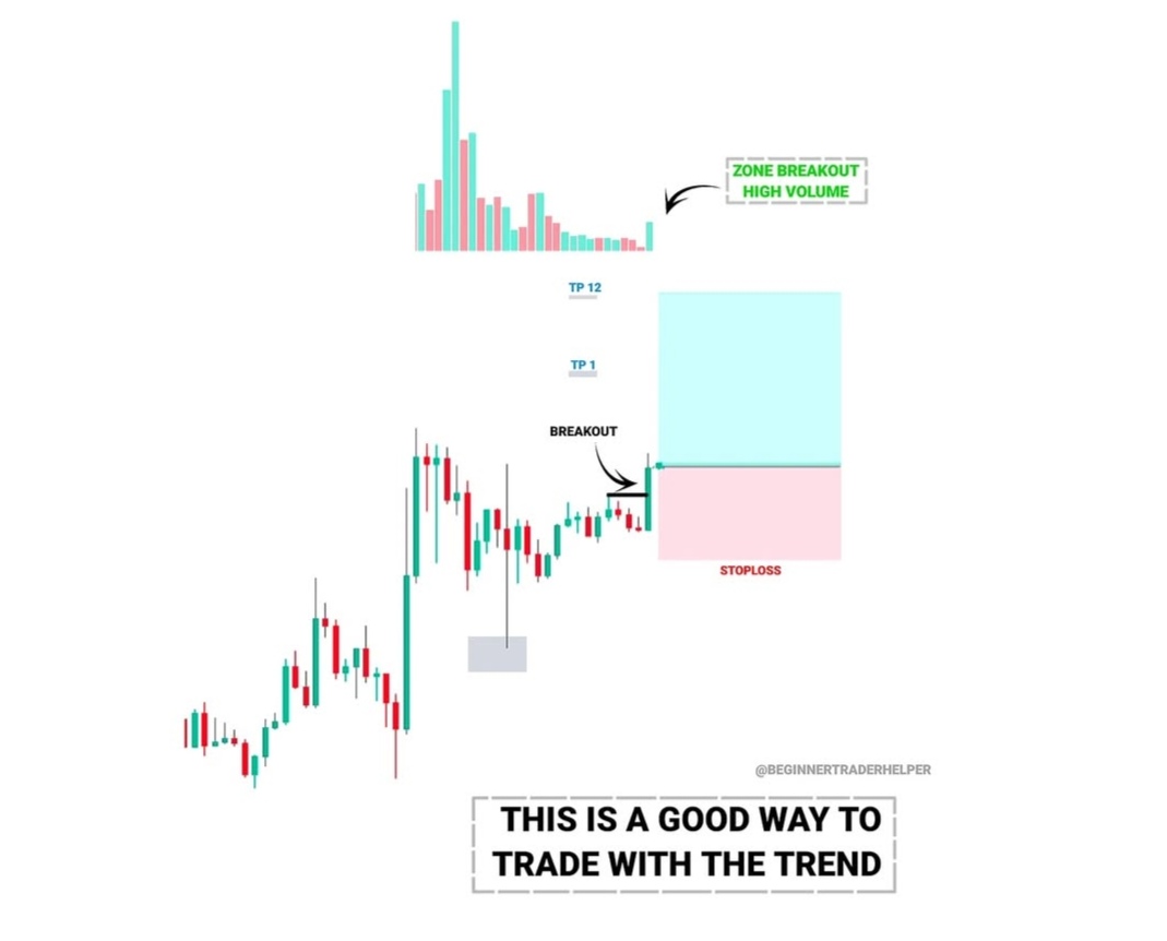 Um dos aspectos mais importantes deste padrão é o aumento significativo do volume de negociação no momento do rompimento. O gráfico indica uma "ZONE BREAKOUT HIGH VOLUME", o que significa que muitos participantes do mercado estão a entrar na posição compradora, reforçando a validade do movimento ascendente. Quando um rompimento ocorre com volume elevado, há uma maior probabilidade de que o movimento seja sustentado, diminuindo as chances de um falso rompimento.