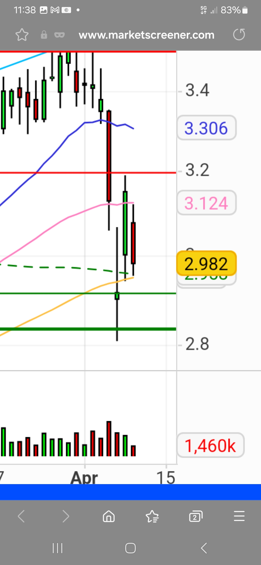 Terceira posição pensada para os 2,84€, caso venha ao suporte.