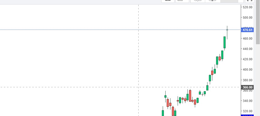 No curto prazo o objetivo dos touros é lavá-la a 400, depois se verá se vale mais.