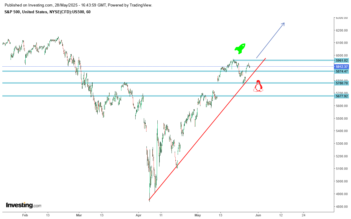 Estou em crer que vamos ter alguns dias de quedas, mas pode muito bem chegar ainda á resistência 5870 mas a AT que há grande probabilidade dos ursos (aka posições vendedoras) entrarem nesta zona.
