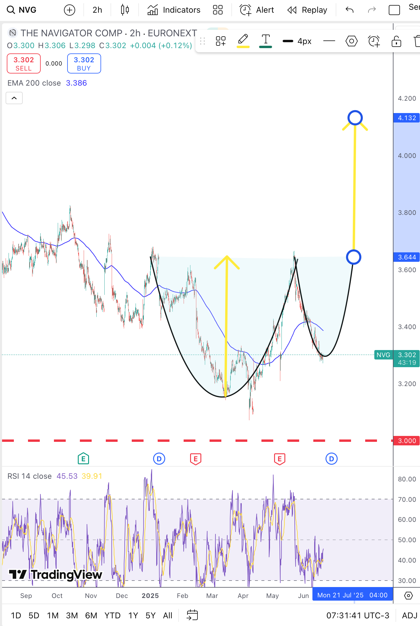 trend=friend Escreveu:Fez um rounded bottom interessante, fraquejou no lip da cup nos 3,60, parece ser devida uma vinda aos 3,40 para depois eventualmente formar a handle.