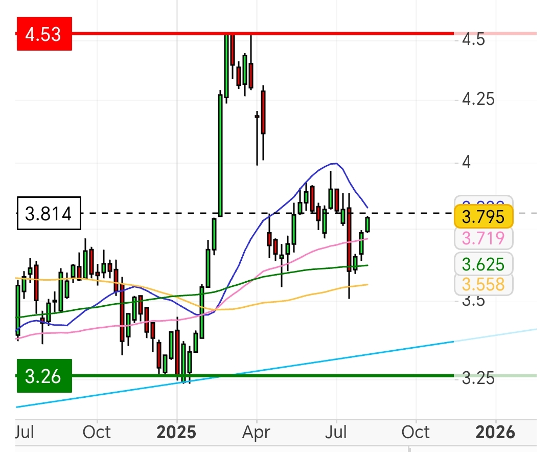 Bela subida da NOS. Novamente nos máximos relativos de início de Julho. Terá força para ir fechar o Gap de dividendos? Com bolsas em máximos e a subir há umas semanas, talvez não seja fácil sem tudo consolidar um pouco