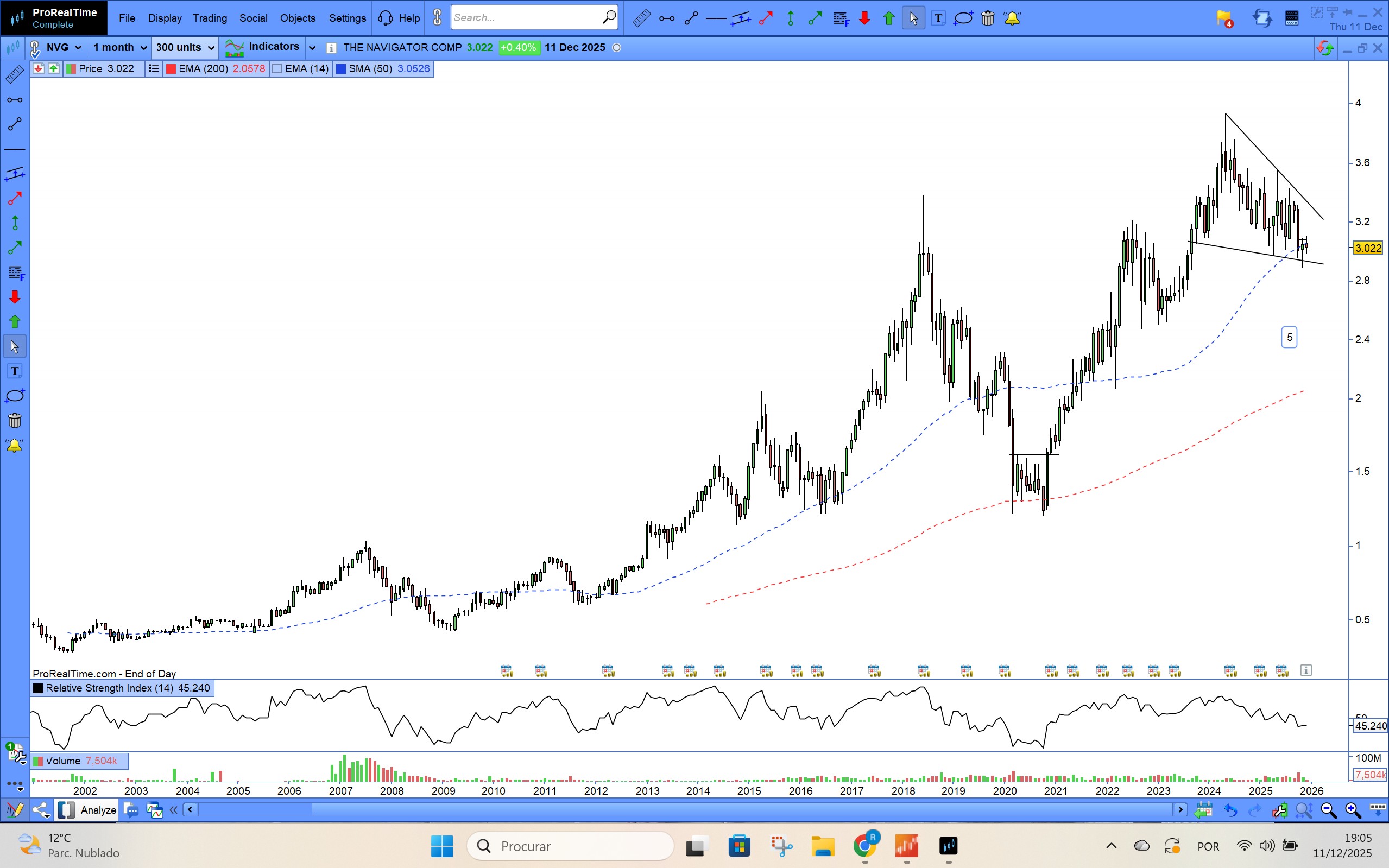 Tenho andando as voltas com o grafico da Navigator e talvez esta cunha descendente seja o padrao mais acertado neste momento , vamos acompanhando