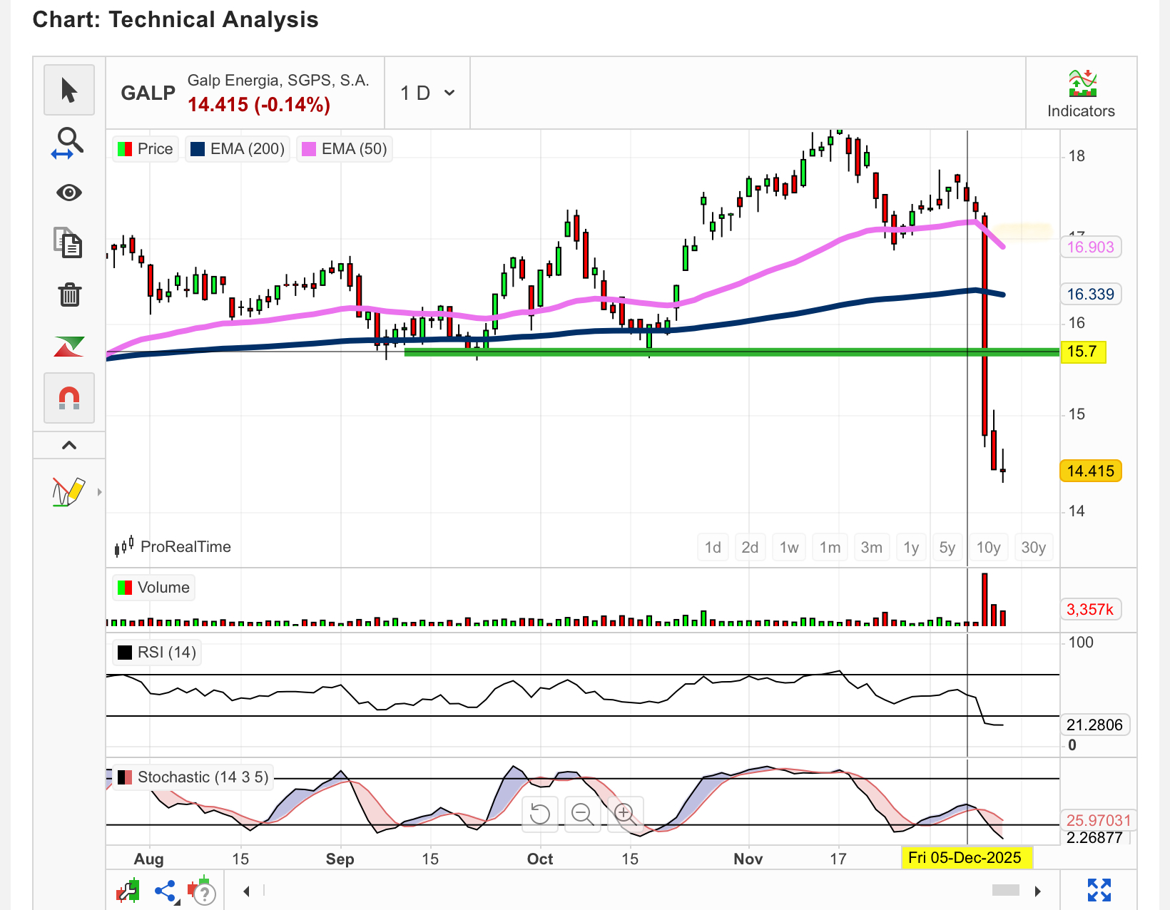 É verdade... ainda assim parece-me devido um reteste à zona dos 15,60/15,75 (vejam onde parou naquela manhã da venda à Total, já para não falar dos gráficos supra que mostram bem a sua relevância nos últimos meses e anos). Só um relief para ajudar o desgraçado do RSI abaixo de 20 (!).