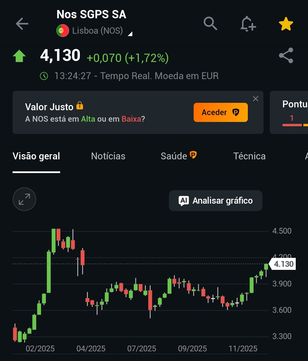 So vi Mercados agora, belo dia para a NOS. Bom volume e uma subida simpática. Para os 4.50 já não falta tudo