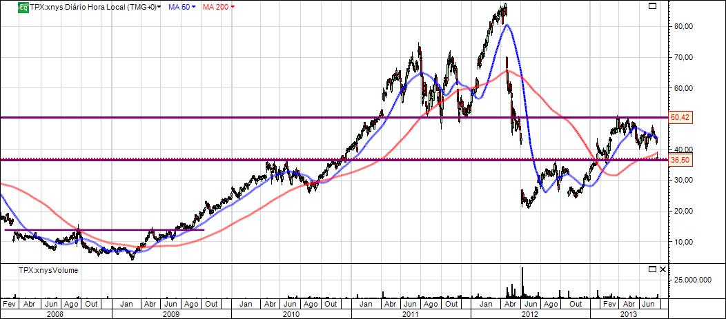 Quanto ao título, teve um forte bull market iniciado em meados de 2009 que levou o título a multiplicar o seu valor em bolsa por mais de 20 vezes desde os mínimos de 2009. Em 2012 teve um movimento bearish brutal em Abril e Maio com quedas bastante acentuadas.