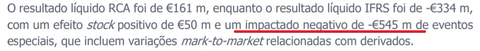 Não sei até que ponto que o prejuízo reportado com os derivados de cobertura (MtM) não vai afetar (negativamente) o dividendo a distribuir.