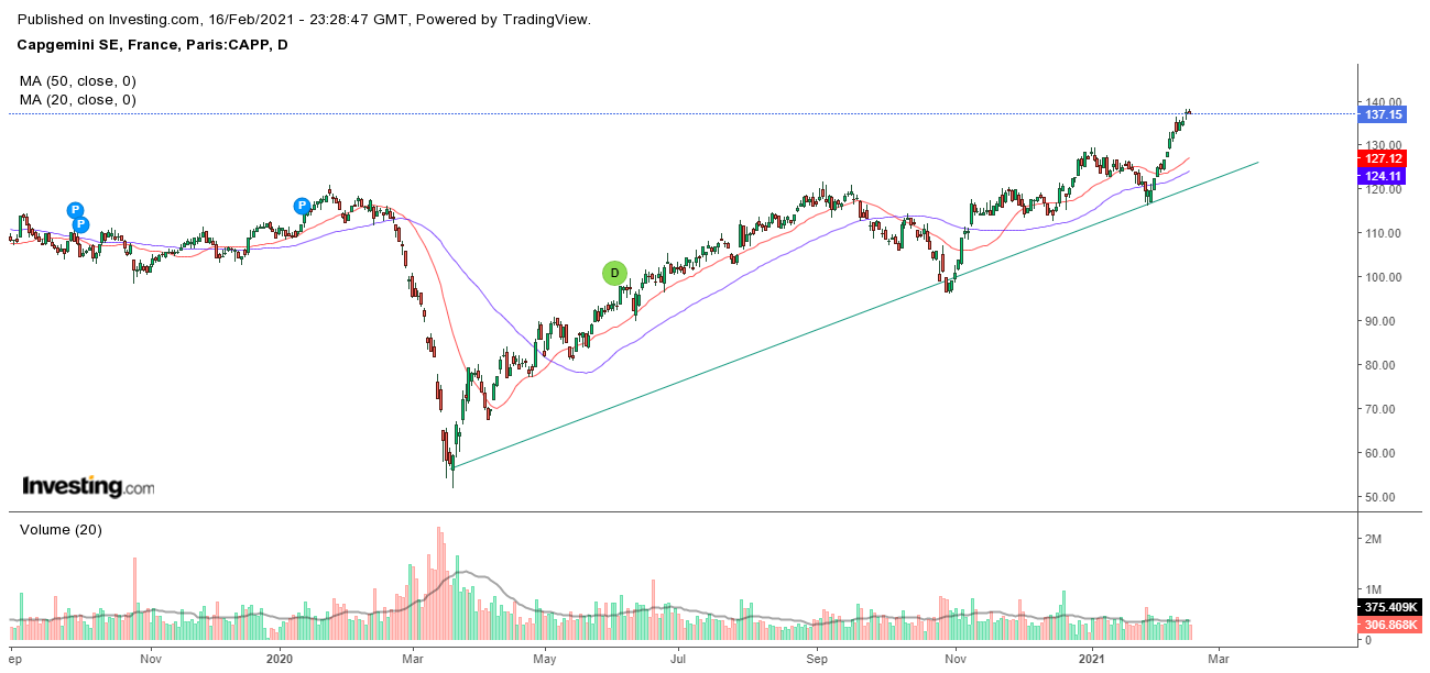 A Cap Gemini encontra-se numa situação bastante bull, tendo feito recentemente máximos de seis anos.